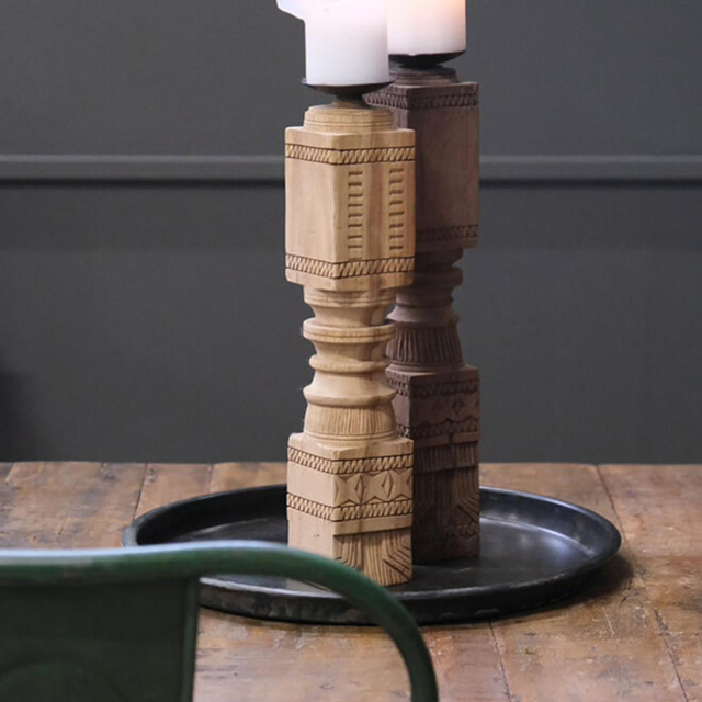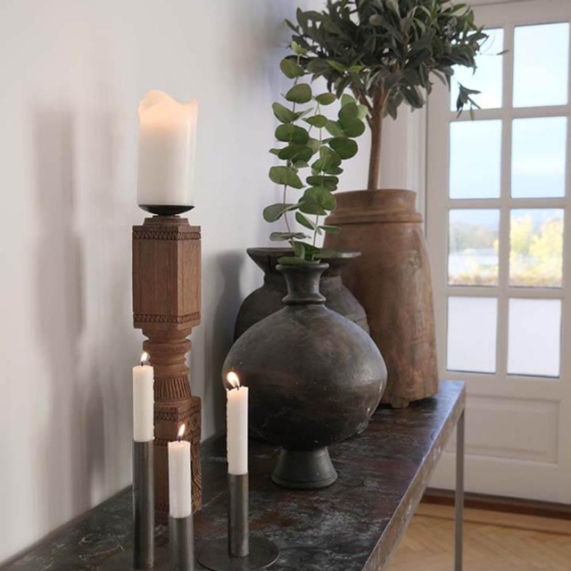 Platzieren Sie sie auf einem langen Restauranttisch, auf der Fensterbank im Wohnzimmer oder als skulpturales Element im Eingangsbereich. Sie wirken sowohl im Duo als auch alleinestehend und schaffen eine gemütliche Atmosphäre mit Charakter – ganz gleich, ob die Kerzen brennen oder nicht.