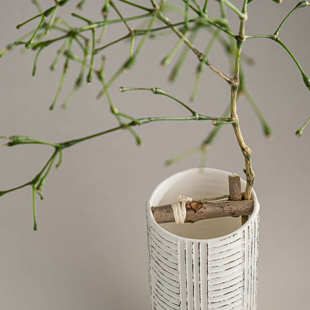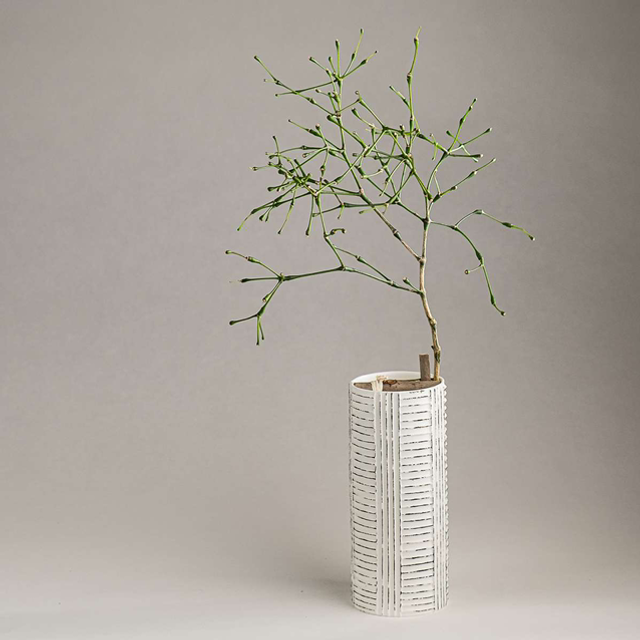 Farbe: weiß, mit Rippen und schwarzen Konturen