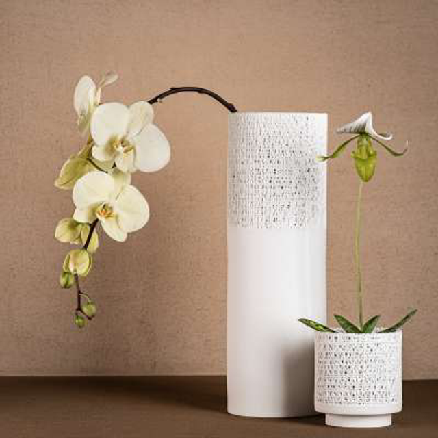 Eine fein durchbrochene Struktur, zart, transluzent und dennoch stark. Die neue KlLATT objects Serie GAZE verbindet kunsthandwerkliches Können mit einer klaren, schnörkellosen Formgebung zu einem kontemporären, ikonischen Design. Die netzartige Struktur entsteht in einem komplexen Verfahren, in dem flüssiges Knochenporzellan im genau berechneten Rhythmus auf eine eigens entwickelte Form gespritzt wird. Jedes Stück wird hierbei individuell handgefertigt und ist ein Unikat.