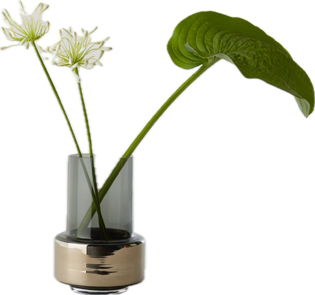 Teelicht aus mundgeblasenem Rauchglas mit Platiniertem Streifen