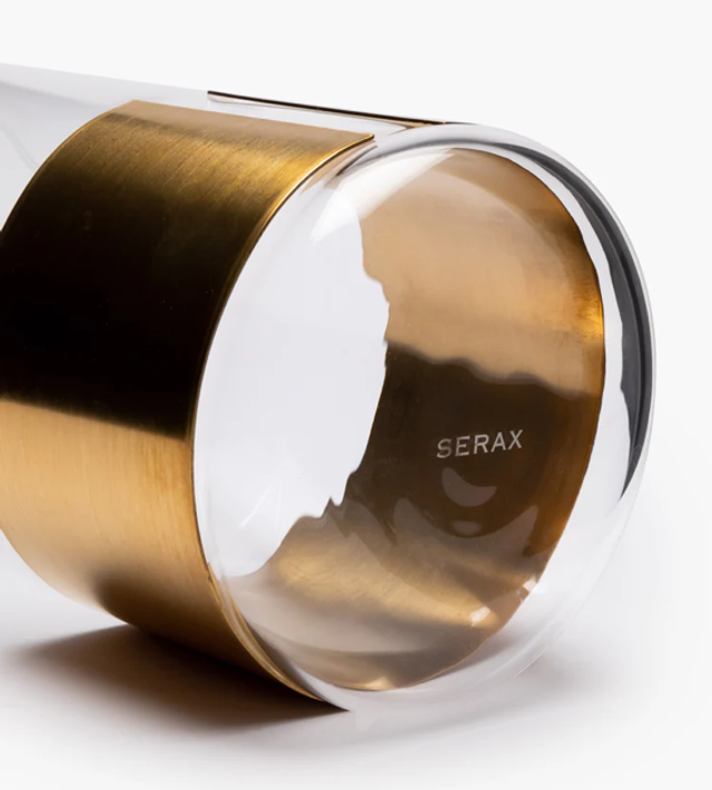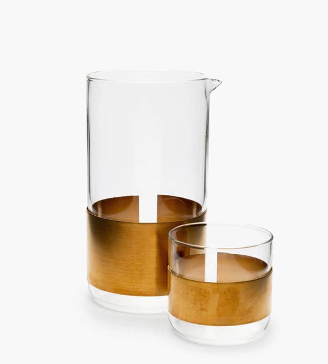 Carafe aus Borosilikatglas mit Ring aus massivem Kupfer
