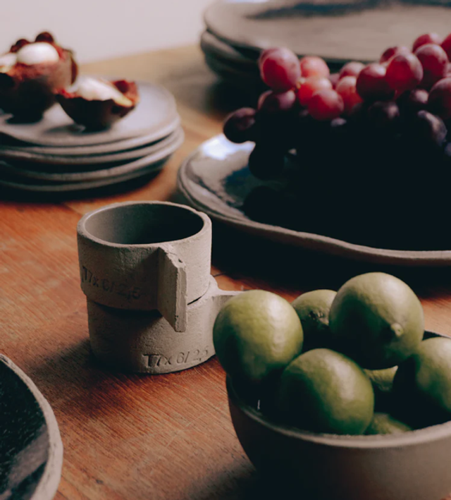 Frühstücksteller, Steingut und Zement
