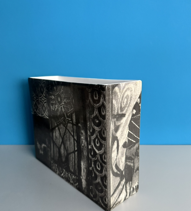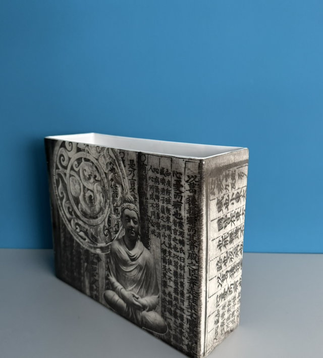 Vase Decoupage Buddha / rechteckig , grau-schwarz